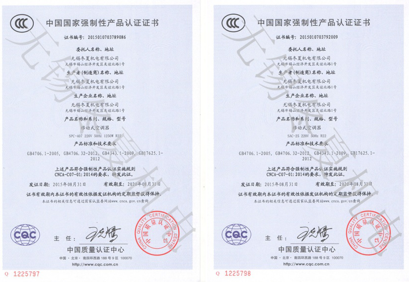 • 近日,無(wú)錫冬夏機(jī)電有限公司的移動(dòng)工業(yè)冷氣機(jī)、暖風(fēng)機(jī)產(chǎn)品7個(gè)型號(hào)取得了中國(guó)質(zhì)量認(rèn)證中心頒發(fā)的3C強(qiáng)制認(rèn)證證書(shū)。3C認(rèn)證的全稱為“強(qiáng)制性產(chǎn)品認(rèn)證制度”,它是中國(guó)政府為保護(hù)消費(fèi)者人身安全和安全、加強(qiáng)產(chǎn)品質(zhì)量管理、依照法律法規(guī)實(shí)施的一種產(chǎn)品合格評(píng)定···