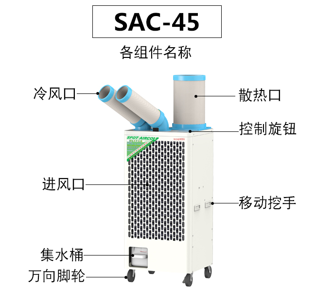 可外接3米排熱管,實現(xiàn)對小空間的整體降溫。